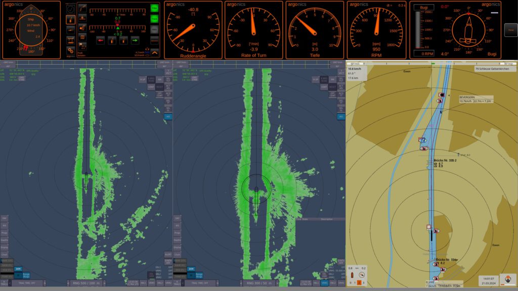 💪 Samen met Argonav GmbH behoren wij tot de weinige bedrijven in Europa die nu een compleet systeem voor afstandsbesturing uit één hand kunnen aanbieden. Wij stellen onze klanten in staat om een afstandsbesturingscentrale naar eigen wensen in te richten. Het systeem integreert: de afstandsbesturing van roer, hoofdmotoren en boegschroef, de overdracht van radar- en navigatiegegevens, ECDIS-kaartweergave, LiDAR-gegevens, radiocommunicatie evenals video- en audiodata, automatische baanvoering (argoTrackPilot) en een systeem voor noodstop en virtueel ankeren (argoPositionPilot).